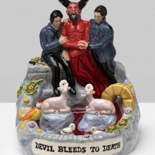 The piece anchors the larger exhibition at the Shepherd. Co-curated by Cave and Laura Mott, “Seen/Scene” draws from the private collection of philanthropist Jennifer Gilbert; it also offers an echo of “Here Hear,” Cave’s epic 2015 solo show at Michigan’s Cranbrook Art Museum, which Mott curated (the artist is a graduate of Cranbrook Academy of Art). “It was a really wonderful moment to honor that project,” Mott told me.